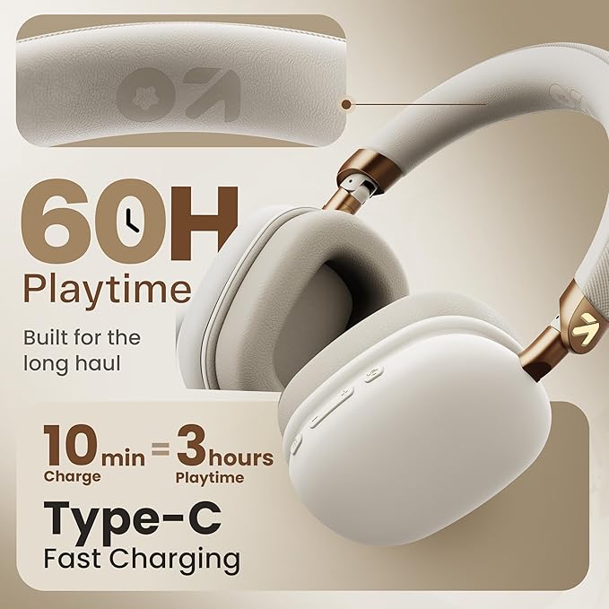 • ✅ ENC for Clear Calling– Equipped with Environmental Noise Cancellation, these over-ear headphones ensure crystal-clear call quality by minimizing background noise during voice chats or meetings.